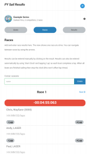 I wanted something quick and easy to use that allowed me to set up boats and competitors and then allow me to publish the results to my local club website. I didn’t want to type much and I wanted to see results at any point during the race.