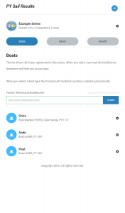 After you’ve created your series you can start adding the Boats. A Boat needs a minimum of a Helm and a Boat Type.