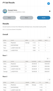 The results show the normal stuff like elapsed time, rank and adjusted time (after the PY Number handicap is applied).