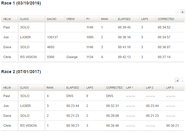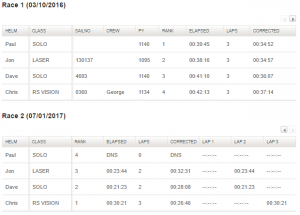 Firstly, I didn’t enter each individual lap time. I was being lazy, I simply entered the time for each boat as they finished. Secondly, you’ll notice that some boats completed more laps than others in Race 2. This often happens! Toppers, for example, sail a lot slower than Lasers! SailResults will average results according to the rules.
