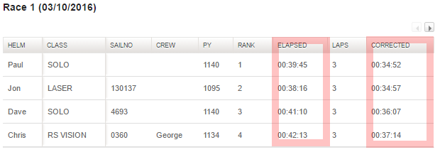 Elapsed – this is the real amount of time the boat took to complete their laps
