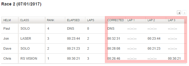 Corrected – is the corrected time after applying the boat’s PY Number. See this post about Portsmouth Yardstick numbers and how they are applied!